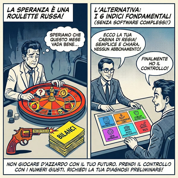 Smettete di giocare d’azzardo con la vostra azienda. Prendete i vostri bilanci, ricalcolate questi 6 indici ogni mese. Le verità che emergeranno potranno essere scomode, dolorose, forse terrificanti. Ma sono l’unica base solida su cui costruire un futuro che non dipenda dal caso.