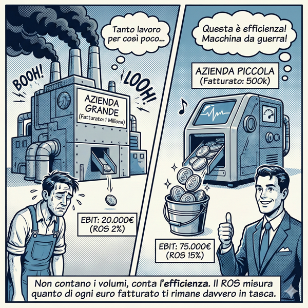 È meglio fatturare 1 milione di euro con un ROS del 2% (generando 20.000€ di EBIT) o fatturare 500.000 euro con un ROS del 15% (generando 75.000€ di EBIT)?